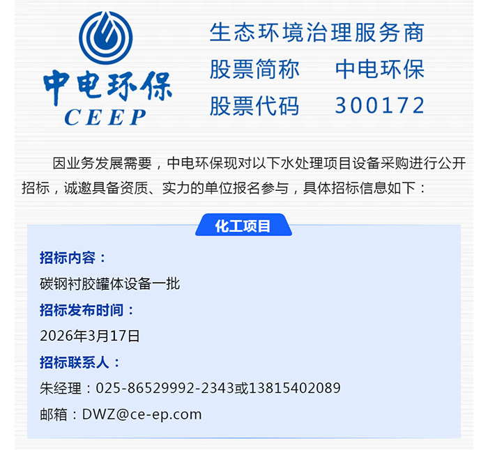 中電環(huán)保股份有限公司是南京市首家環(huán)保上市公司(股票簡稱:中電環(huán)保,股票代碼:300172),南京環(huán)保產(chǎn)業(yè)協(xié)會會長單位,國家級聯(lián)盟理事長單位,是生態(tài)環(huán)境治理服務(wù)商,主營(3+1):水務(wù)、固危廢、煙氣治理及產(chǎn)業(yè)創(chuàng)新平臺,包括:工業(yè)水處理、污水處理及水環(huán)境綜合治理;固危廢土壤、污泥餐廚垃圾處理;煙氣及VOCS治理;智慧環(huán)保;高端裝備等。